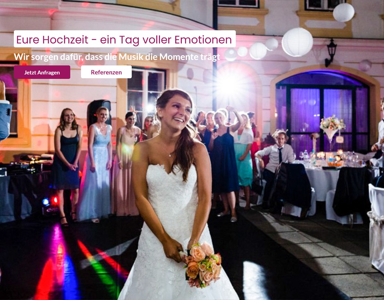 Ob Hochzeit oder Firmenfeier wir finden immer den richtigen Beat den perfekten Sound und machen Ihre Party einzigartig. Vertrauen Sie unserer langjähriger Erfahrung und Sie feiern ein unvergessliches Fest von dem noch lange gesprochen wird.